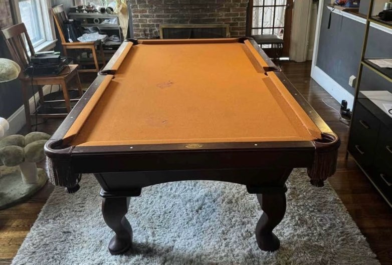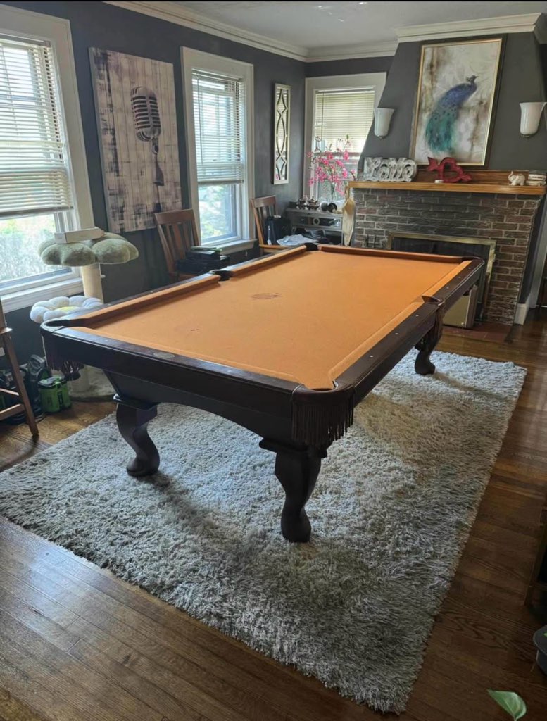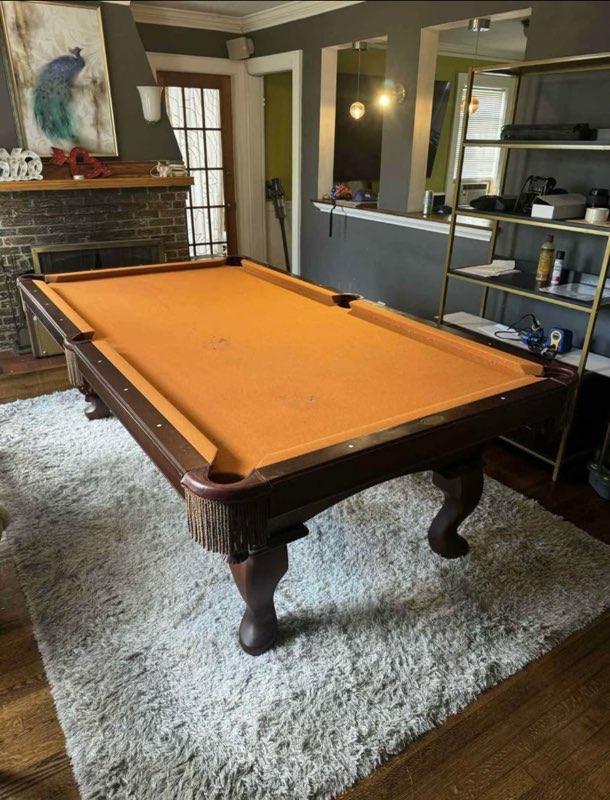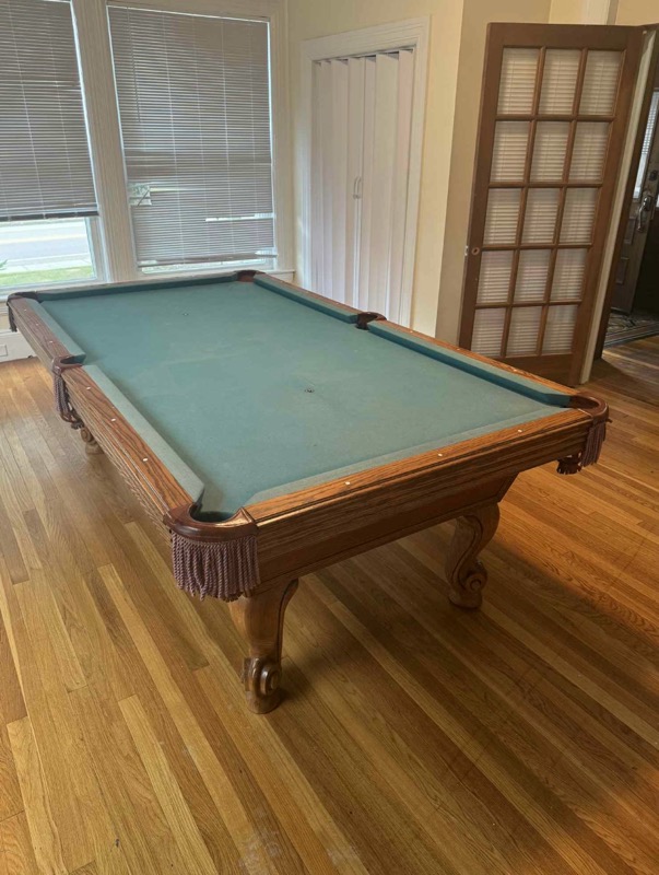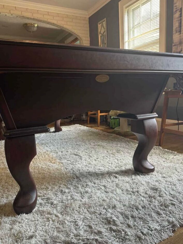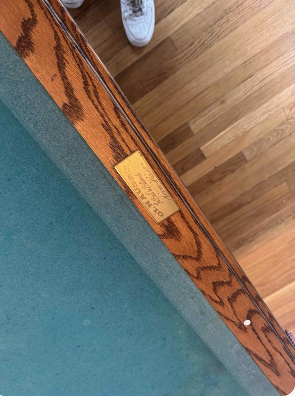A beautiful, furniture-grade Olhausen pool table in excellent condition, finished in a rich mahogany tone that offers a warm, timeless look. Its classic styling and elegant details make it a perfect addition to any home or entertainment area.